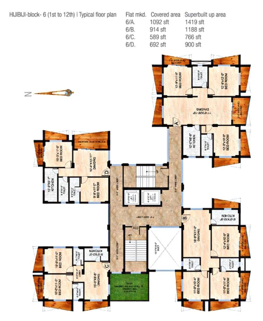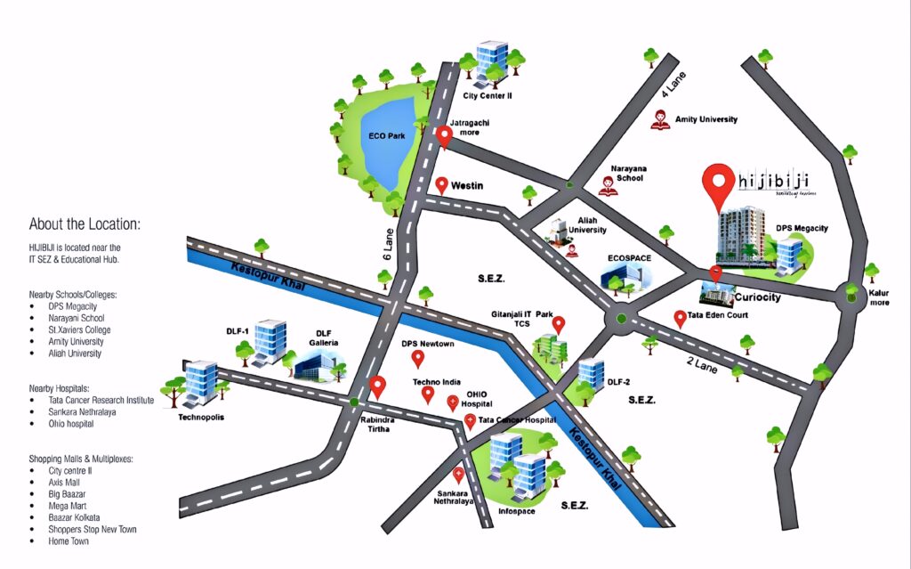 Welcome to Hijibiji, a residential masterpiece in New Town, Action Area II, Inspired by the playful “scribbles” of childhood, this highrise project features a unique zigzag layout designed to give every resident maximum privacy, ventilation, and a view that isn’t blocked by neighbors.